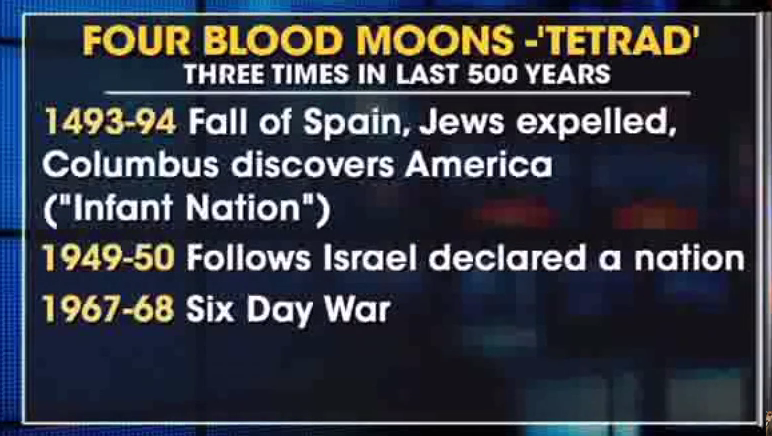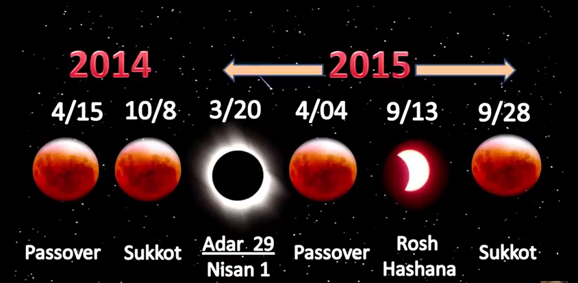 Saj po večini video sploh ni sestavljen od astrologov. Gre za židovski praznik, ki je zdaj že četrtič zapored na isti dan ko je mrk.  Enkrat so jih vrgli ven iz Španije, drugič je Kolumb odkril Ameriko in je bila to nova možnost obljubljene dežele, tretjič pa je bilo priznanje Izraela kot države 1947 in kasneje še vojna z Arabci.  Zdaj se očitno vse to ponavalja. Torej te dni in naslednje leto.